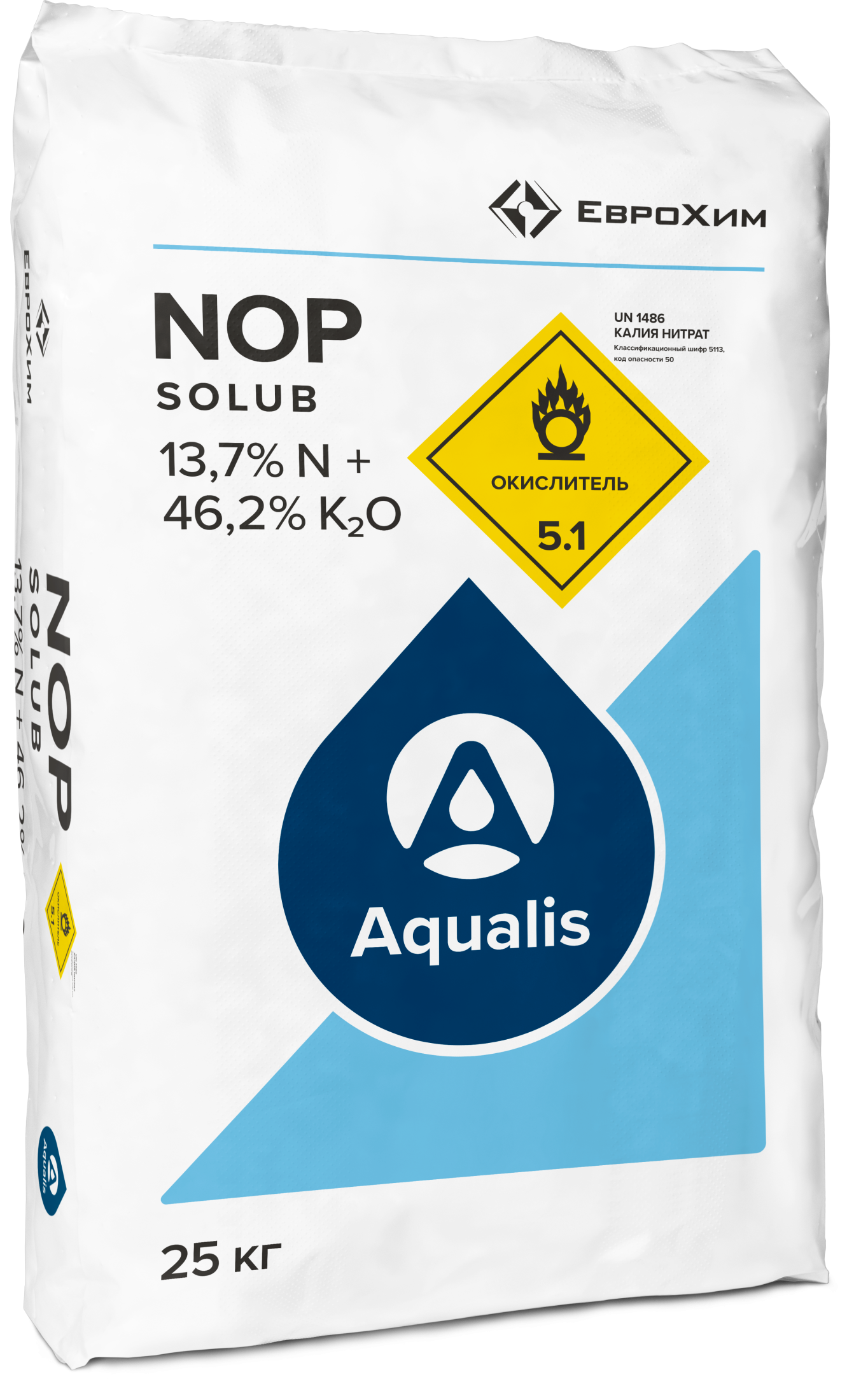 Suda həll olan kalium nitrat — bitkilər üçün əlçatan formada azot və kaliumun yüksək effektiv mənbəyidir. Kalium son məhsulun keyfiyyətinə cavabdehdir və onun əmtəə göstəricilərini yaxşılaşdırır. Damcı suvarma sistemləri üçün ideal seçimdir.
